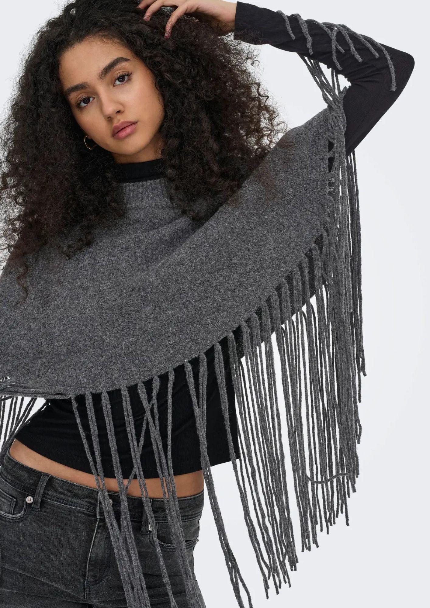 JDY is a full-service international fashion brand offering affordable and trendy products to the fashion-conscious consumer. High-neck, sleeveless bolero with fringed hem. Regular fit. 76% acrylic, 21% polyester, 3% elastane.