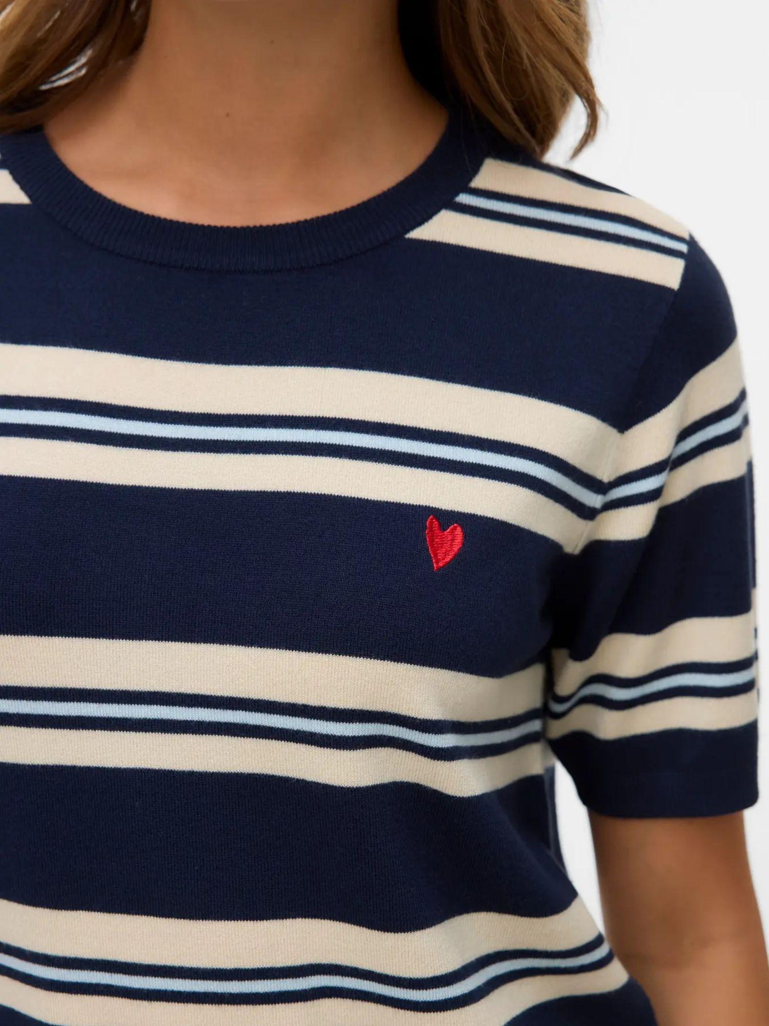 No wardrobe is complete without your favorite sweater, and this might just be your new favorite layer. The perfect way to stay warm and stylish without sacrificing comfort. Pure perfection! Product type: Knit sweater. Neck: Crew neck. Sleeve: Short sleeves. Length/Size: This product fits true to size. Additional details: Embroidery. Fit: Regular fit. Craftsmanship: Flat knit. Composition: 80% LENZING ECOVERO viscose, 20% nylon.