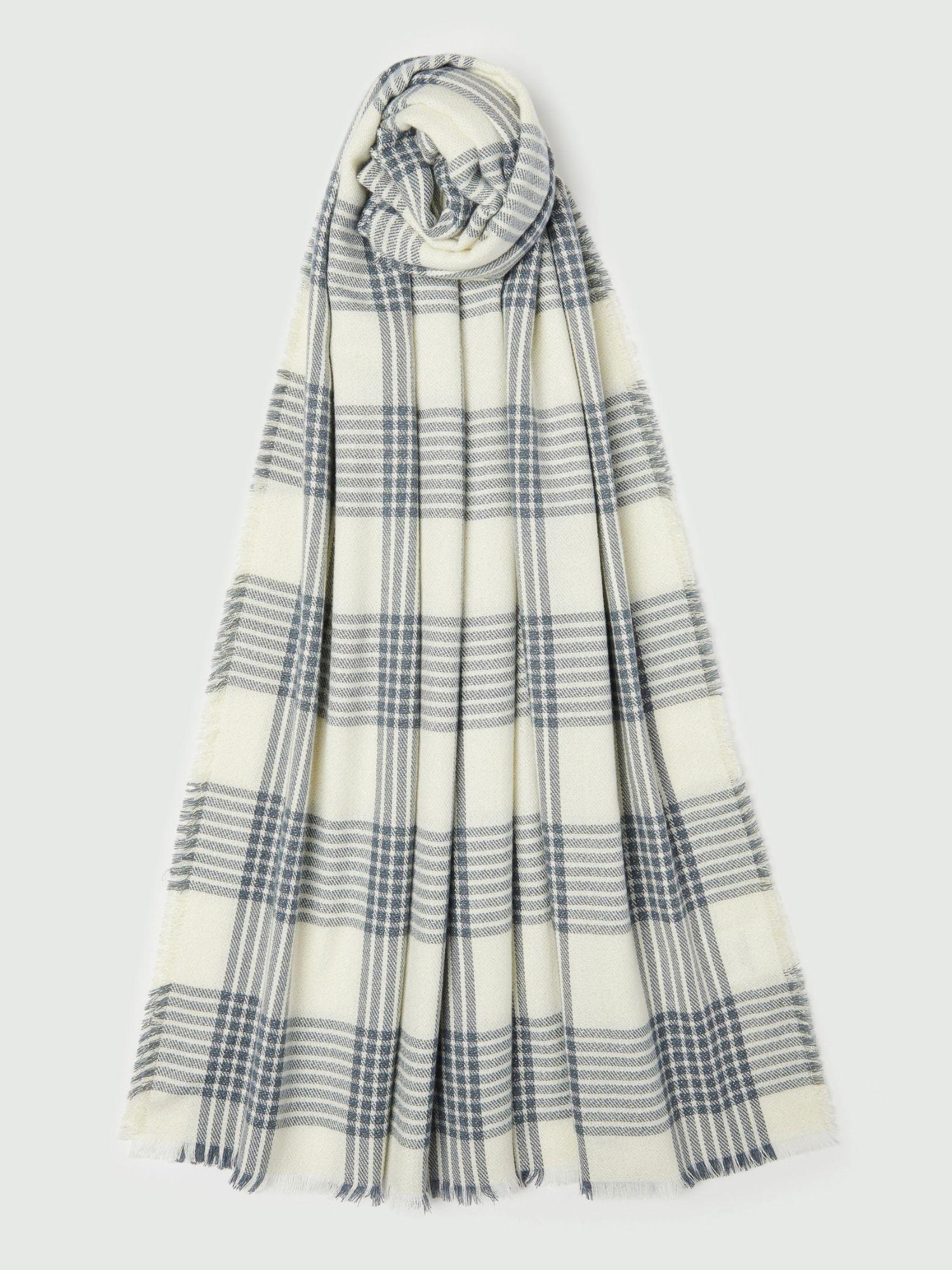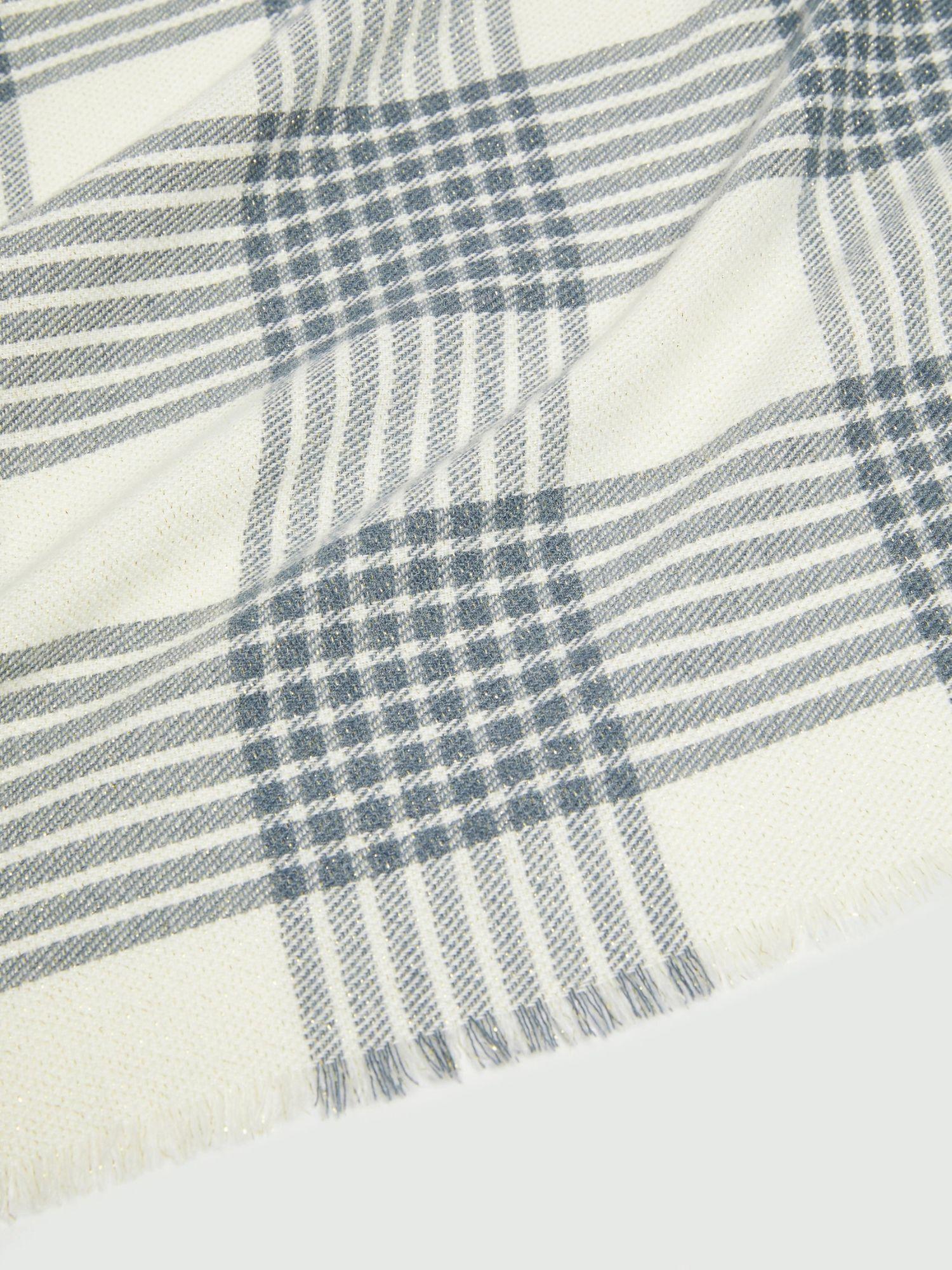 Brighten up the cold season with the delicate shimmer of this viscose and lurex stole. Soft and enveloping, it features a timeless pattern, perfect with blazers or more casual blouses. Stole in a viscose blend with lurex thread. Fringes at the hem. Dimensions: 77 x 197 cm. Composition: 79% polyester, 20% viscose, 1% metallized fiber.