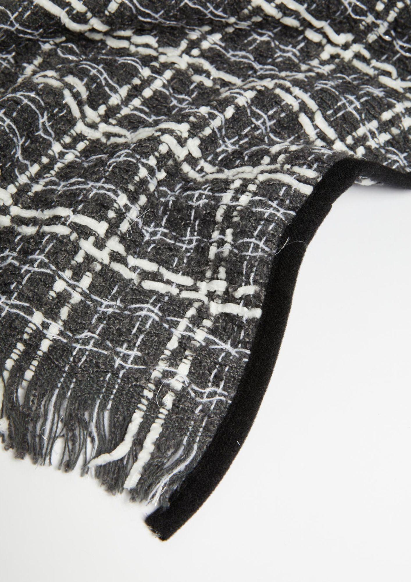 Soft bouclé fabric and a small lapel neckline define this new poncho by Marella. Perfect for wearing on autumn days, over a sweater or blazer. Poncho in technical bouclé fabric, lapel neck, and fringed hem. Fabric: 50% Polyester, 49% Acrylic, 1% Metallic Fiber