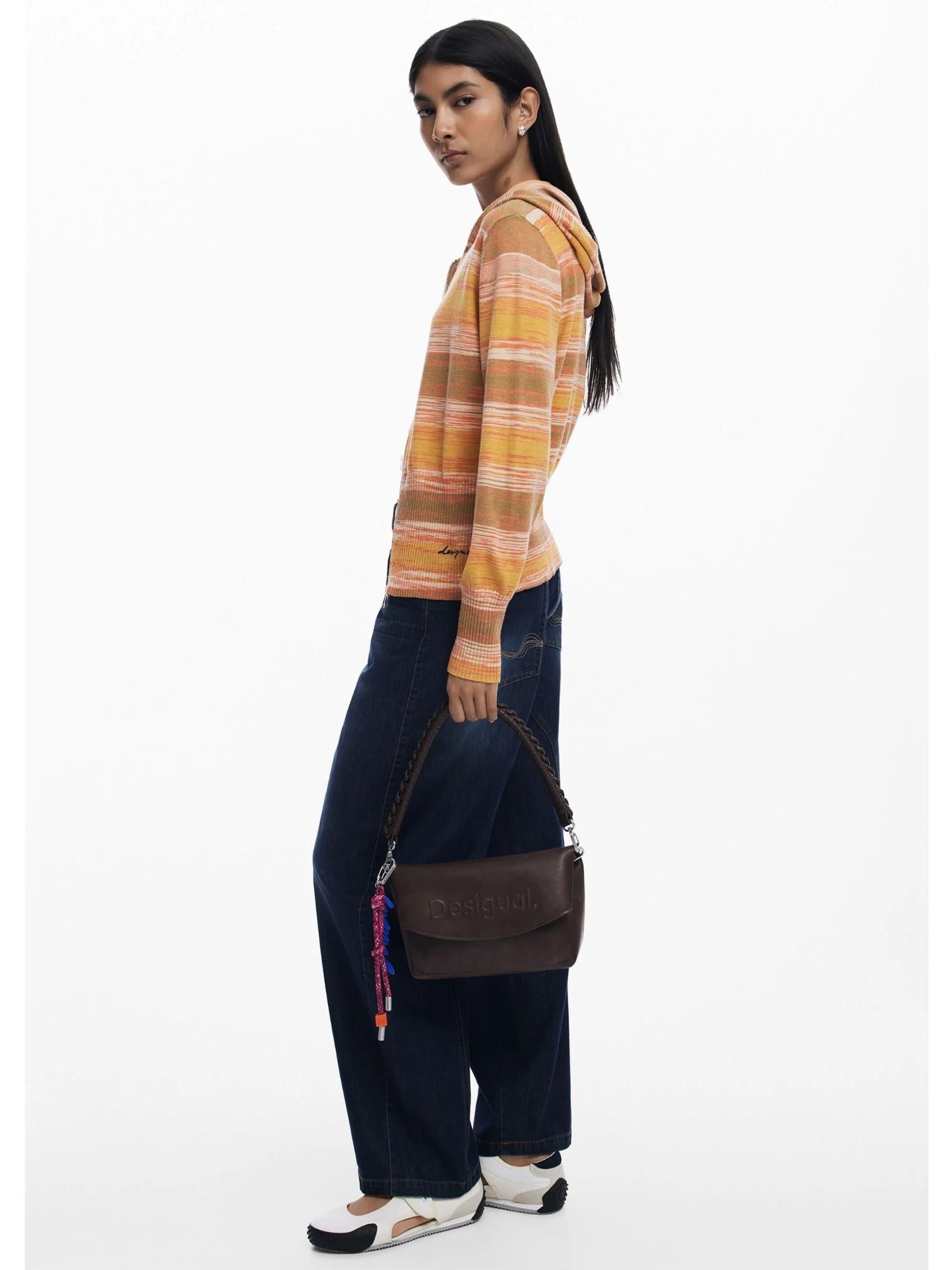 Leather-look fabric shoulder bag, imitation suede, with 3D-effect logo, extendable flap, key ring detail, and interchangeable handles. Color: solid color. External back pocket. Internal zip pocket. Zip closure. Interchangeable handles. Extendable flap. 3D-effect logo. Removable key ring. Leather-look. Designed in Barcelona. Dimensions: 22.8 x 8 x 15.5/31.4 cm. External composition: 100% polyurethane. Internal composition: 100% polyester. Trimming fabric material: 100% polyurethane.