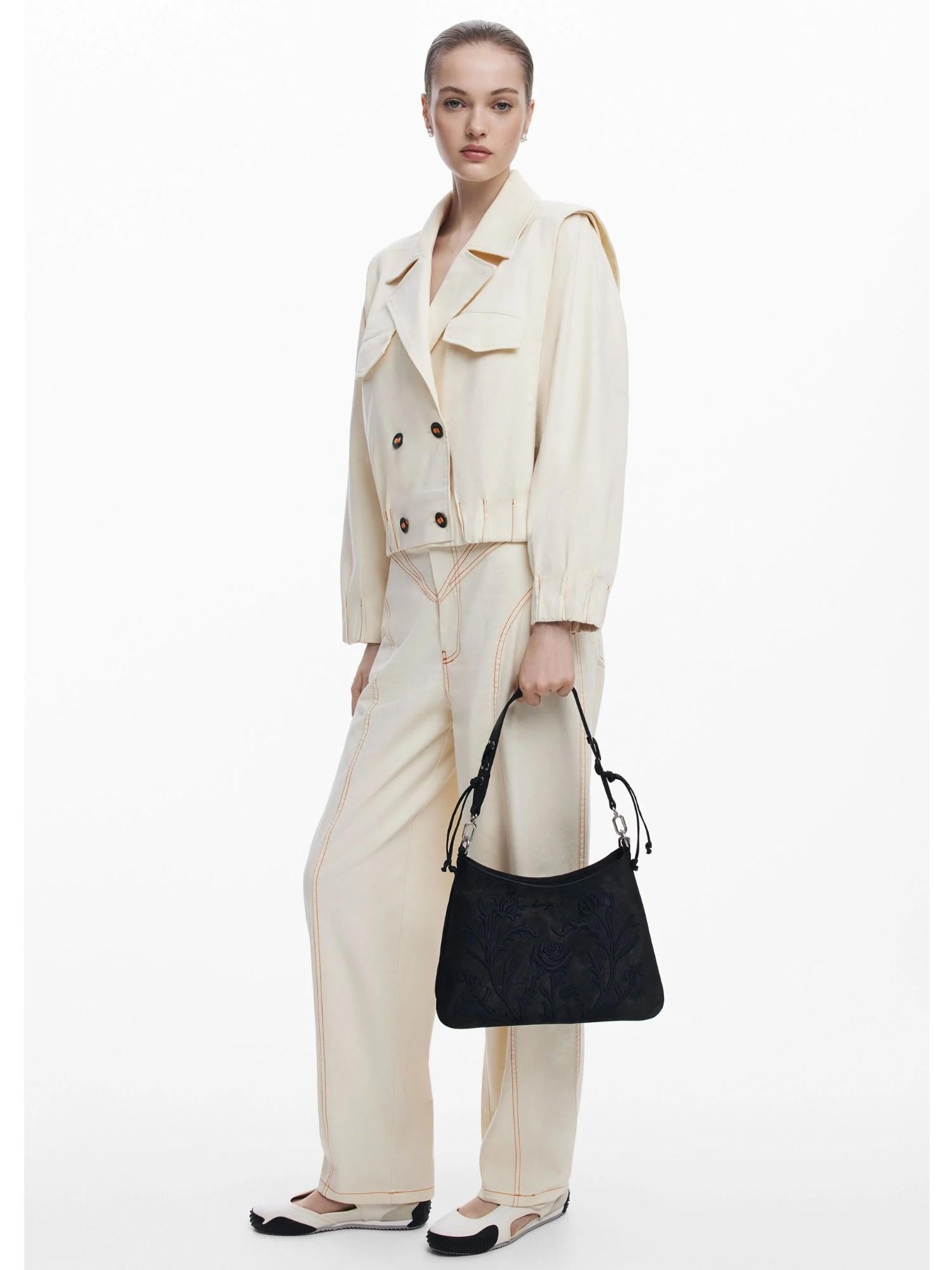 Small shoulder bag in leather-look fabric, solid color, with 3D-effect engraving and zip closure. Color: solid color. Internal zip pocket. Closure: zip. Adjustable handle. 3D embossing. Removable key ring. Leather-look. Designed in Barcelona. Dimensions: 32 x 2 x 20 cm. External composition: 100% polyurethane. Internal composition: 100% polyester. Trimming fabric material: 100% polyurethane.