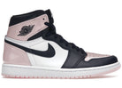 the women's air jordan 1 high atmosphere follows the classic black toe color blocking format with a white and dark navy leather upper. light pink patent leather on the ankle and vamp nods to the pink bubblegum that michael jordan chewed throughout his time on the hardwood. woven nike tongue labels and a signature jordan wings logo draw inspiration from the original 1985 jordan 1 design.