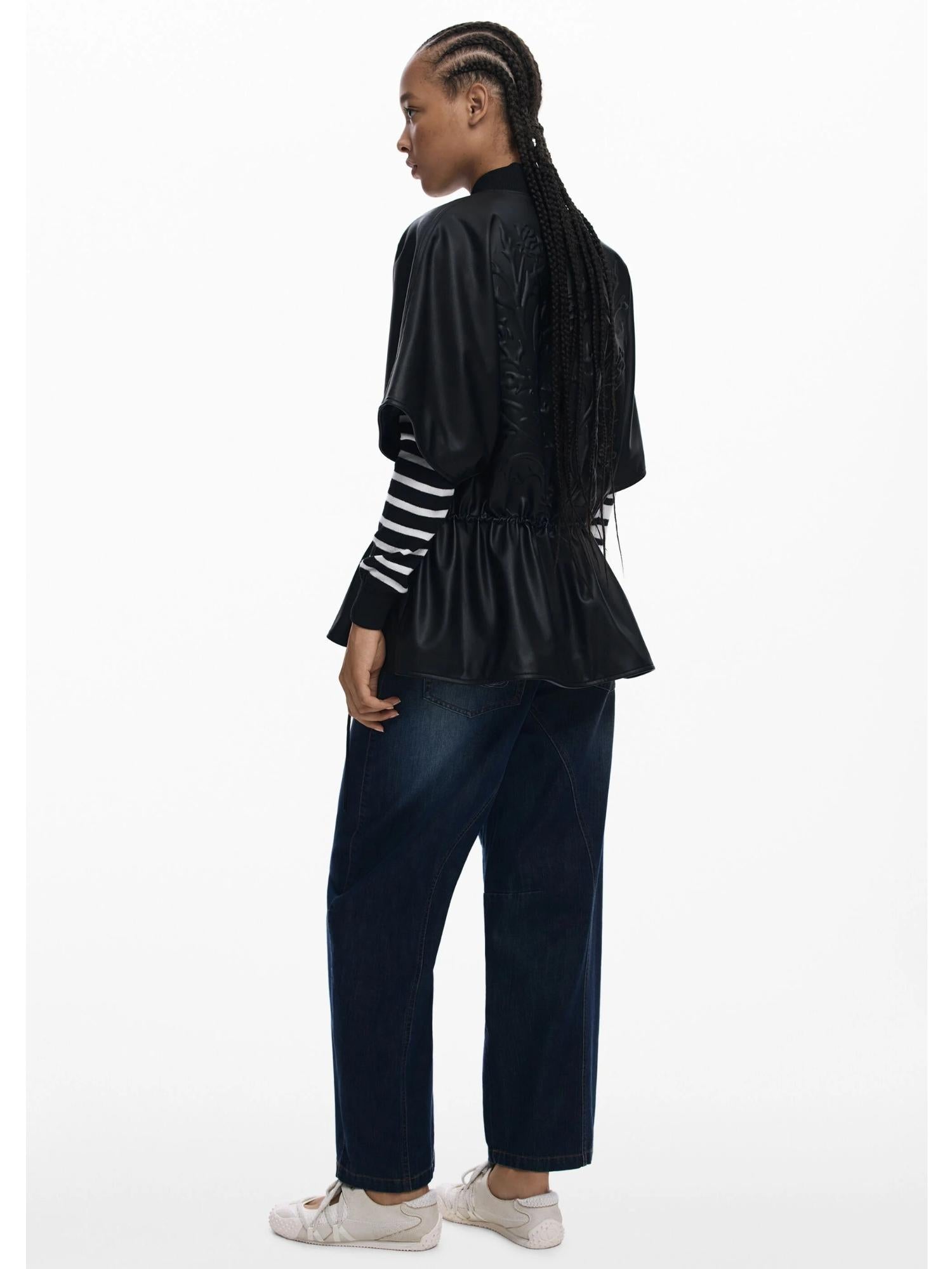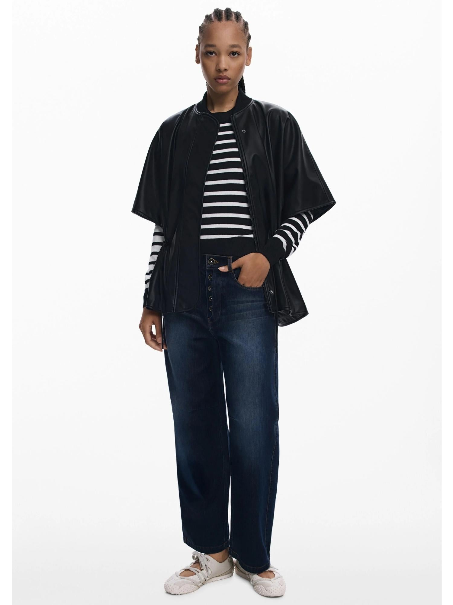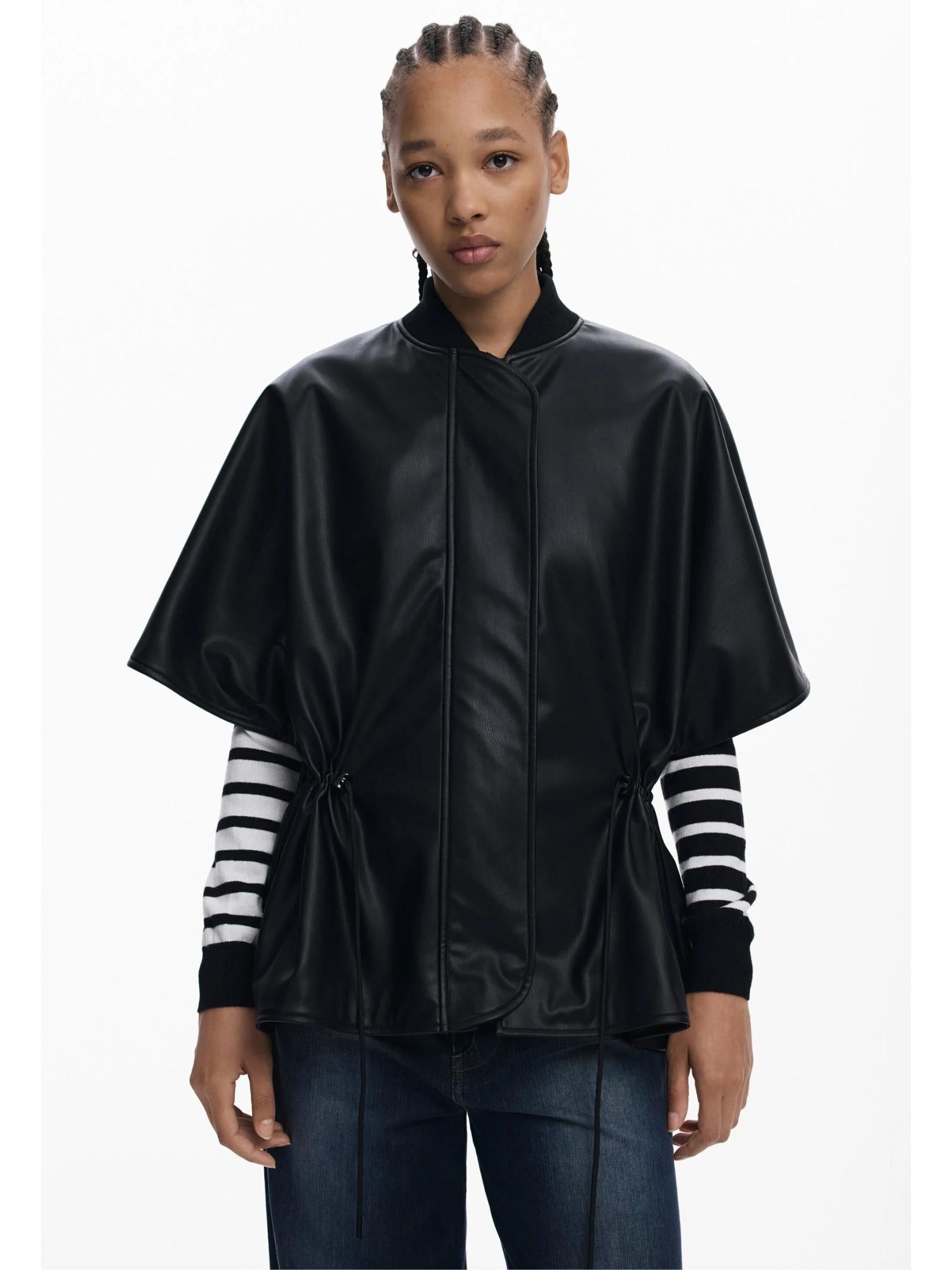 Poncho aspect cuir avec taille élastique ajustable, fermeture zippée et col ras du cou en maille avec relief 3D au dos. Aspect cuir. Coupe standard. Col en maille. Taille élastique ajustable. Fermeture zippée. Détails effet 3D au dos. Détails en maille. Collection automne-hiver 2025. Conçu à Barcelone. Taille unique. Composition extérieure : 100 % polyuréthane. Composition intérieure : 100 % polyester.