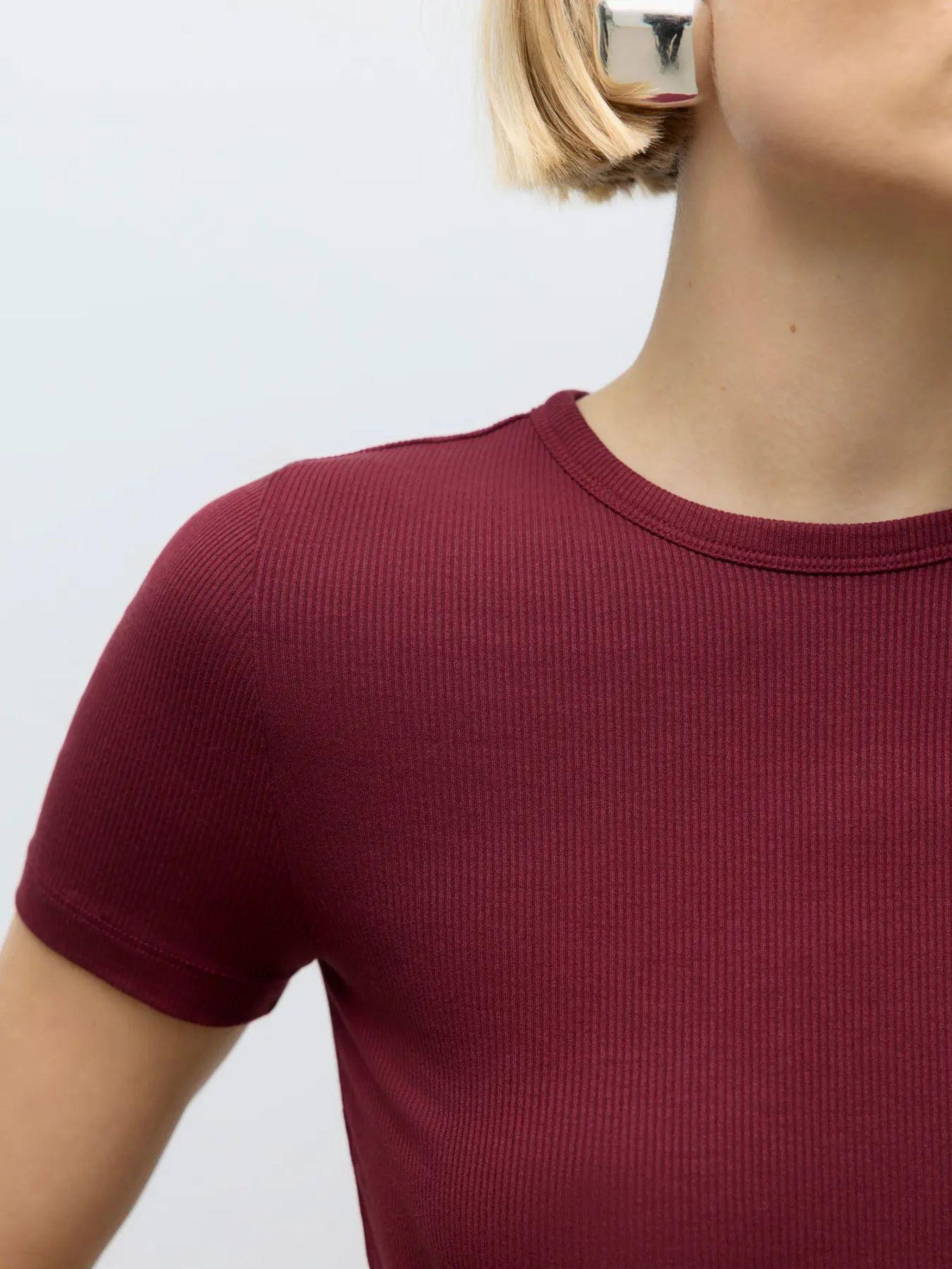 T-shirt frais et intemporel, cet essentiel est parfait en toute occasion. Confectionné en TENCEL™ Lyocell doux et viscose LENZING™ ECOVERO™, il offre une coupe ajustée qui flatte la silhouette tout en assurant confort et respirabilité. Son col ras du cou et ses manches courtes se marient parfaitement avec un jean boyfriend et des baskets pour un look urbain et moderne. Composition : 48 % TENCEL™ Lyocell, 47 % viscose LENZING™ ECOVERO™, 5 % élasthanne.