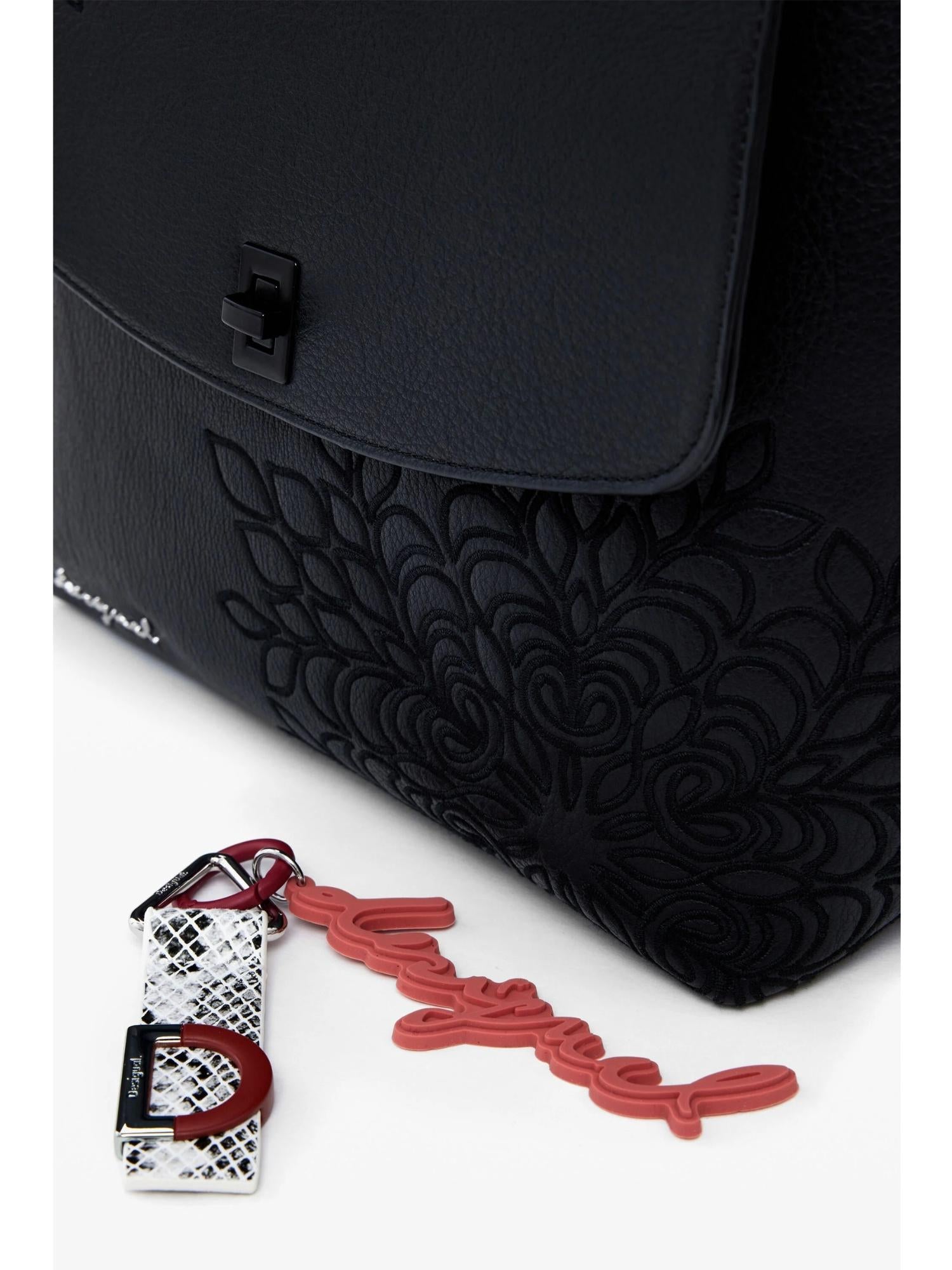 Sac à dos Desigual avec petit rabat gravé pour femme, noir