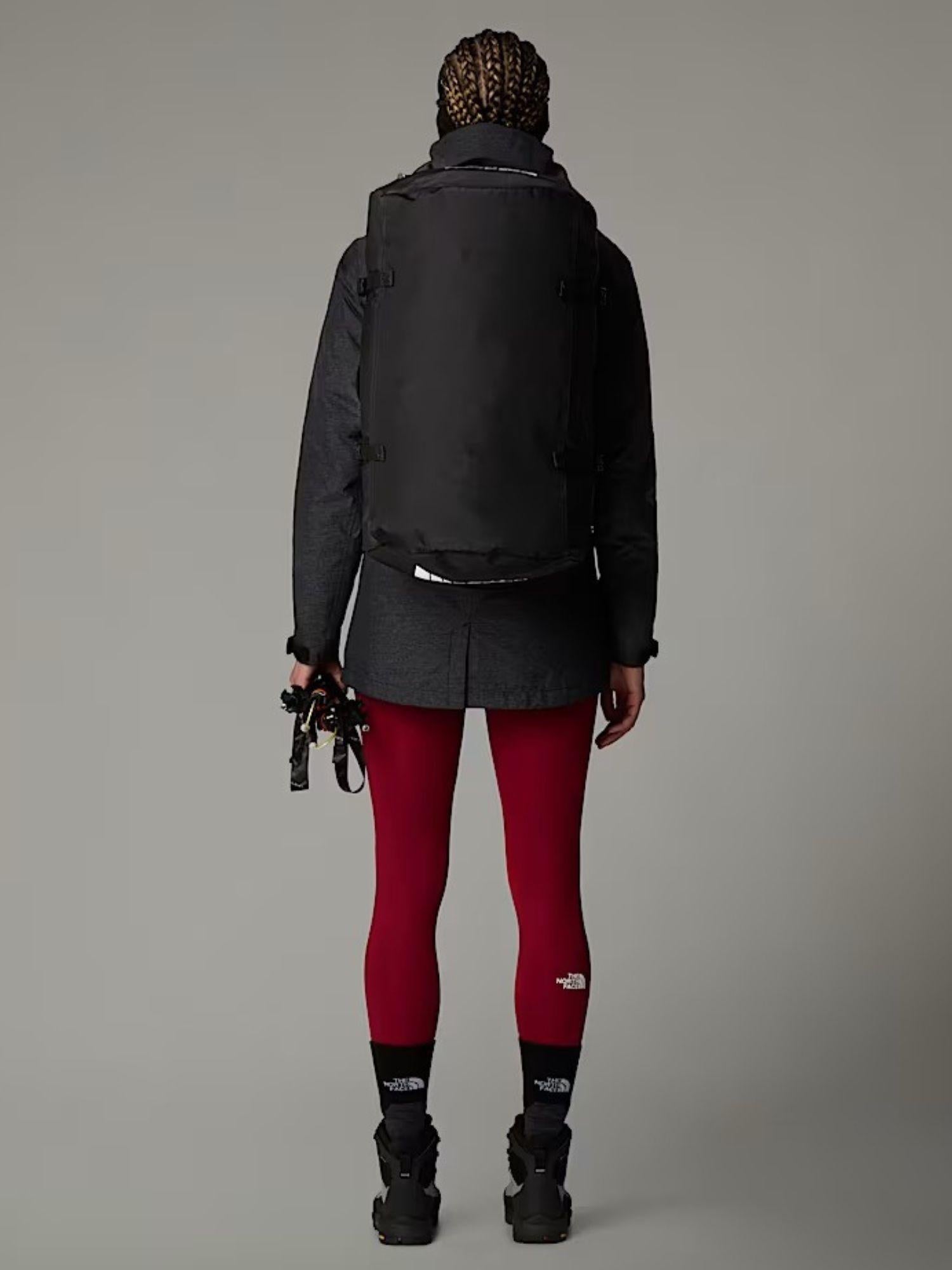 Sac de voyage Base Camp de 50 litres, fabriqué à partir de matériaux recyclés imperméables et durables, avec un traitement déperlant durable (DWR) sans PFC. Convient aux bagages cabine de la plupart des compagnies aériennes. Design polyvalent avec deux poignées latérales rembourrées et des bretelles ergonomiques amovibles et réglables pour un transport en sac à dos. Ouverture pratique pour une visibilité intérieure rapide, quatre sangles de compression pour agrandir le volume et de nombreux détails pour une fonctionnalité maximale. Ample et offrant un espace de rangement étonnamment grand. Matériau recyclé. Déperlant. Convient aux bagages cabine. Composition : structure en polyester recyclé 1000D avec revêtement PVC sans phtalates ; base en nylon balistique recyclé 840D avec traitement déperlant durable (DWR) sans PFC.