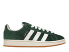 the dark green cloud white adidas campus 00s has an upper that is constructed from dark green suede. the shoe's padded collar offers support and comfort. the sneaker's rubber outsole is durable and provides traction and stability. the perforated ventilation holes on the sides of the upper of the shoe provide breathability. in addition, the shoe has an eva midsole for padding and support. the shoe features the signature 3-stripes logo on the lateral sides, "campus" text on one side, and trefoil branding on the tongue and heel.
