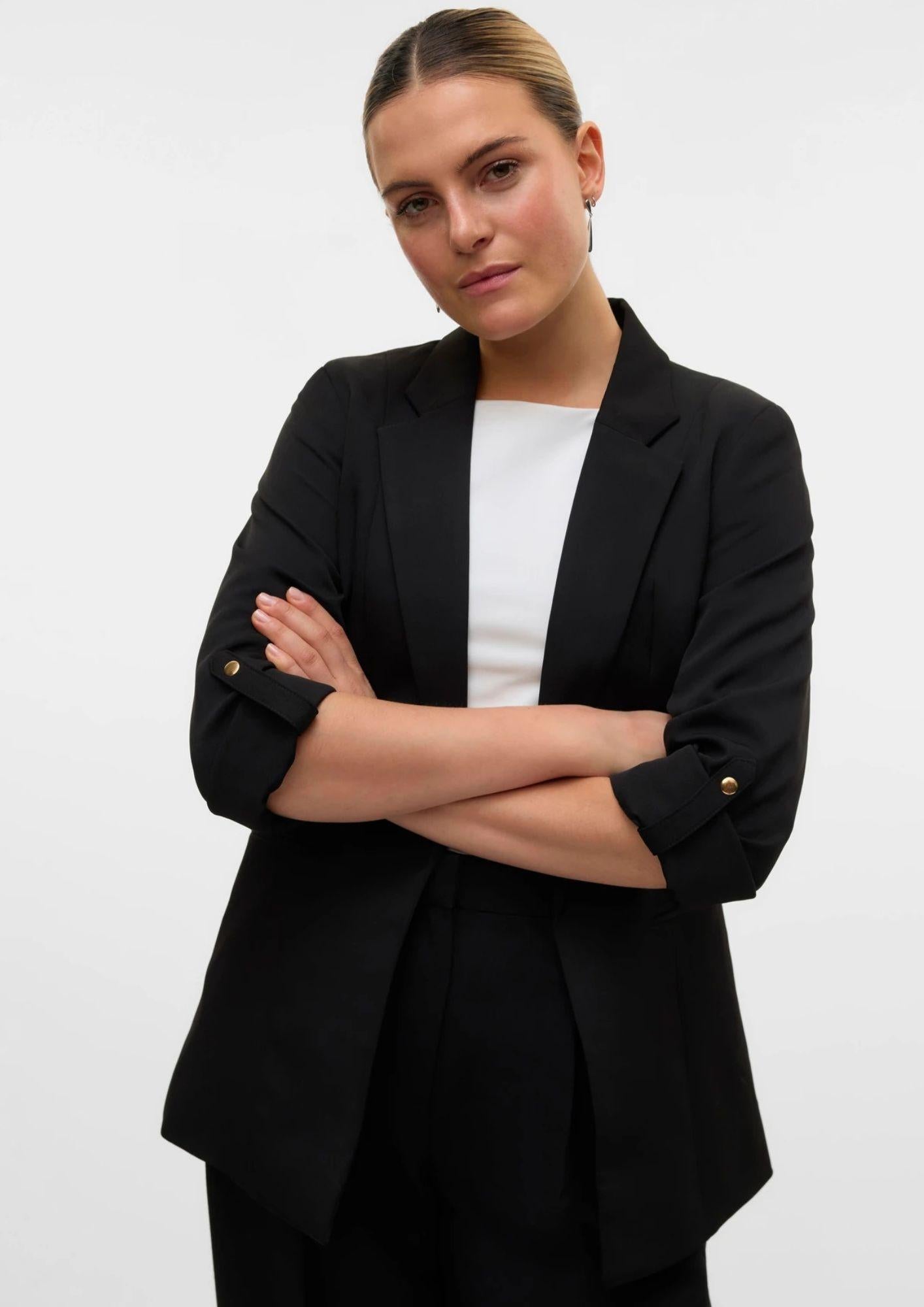 Blazer con collo reverse dal taglio slim fit, elegante e versatile, ideale per aggiungere un tocco di classe a qualsiasi look. Realizzato in poliestere riciclato ed elastan, garantisce una vestibilità comoda e moderna. Dotato di tasche frontali e fodera in poliestere, si abbina facilmente a t-shirt e jeans per un outfit casual chic o a pantaloni eleganti per uno stile più formale. Composizione esterno 95% poliestere riciclato, 5% elastan; imbottitura 100% poliestere.