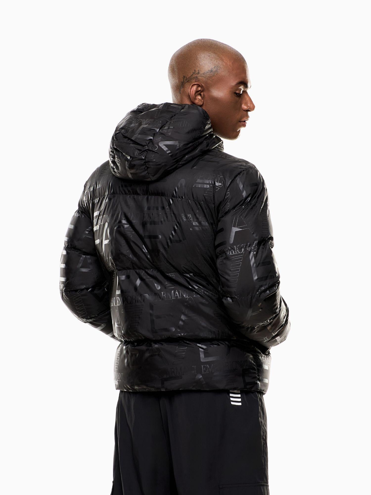 EA7 Emporio Armani Giacca Imbottita con Cappuccio Uomo Stampa Logo All-Over Nero