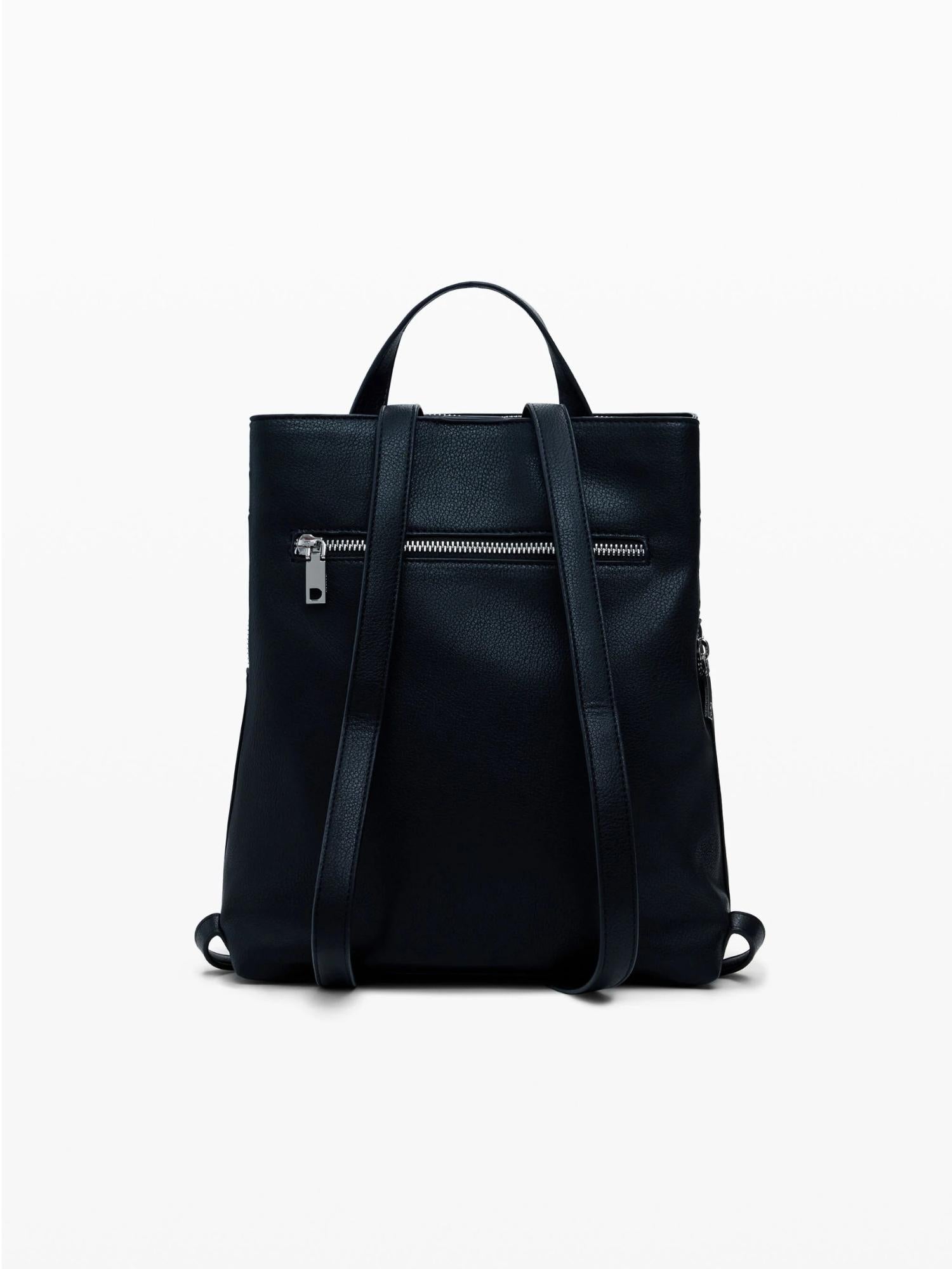 Zaino piccolo in effetto pelle, con trafori, fondo stampato e dettaglio di borchie e applicazioni metalliche. Intagli con sfondo stampato. Applicazioni metalliche. Chiusura: con cerniera. Vari scomparti interni. Manico rimovibile tipo borsa. Fodera stampata. Dettaglio del logo in applicazione metallica. Capacità: 6,15 l. Effetto pelle. Progettato a Barcellona. Misure: 24 x 9 x 30,60 cm. Composizione esterna: 100% POLIURETANO. Composizione interna: 100% POLIESTERE. Trimming fabric Material: 100% POLIURETANO