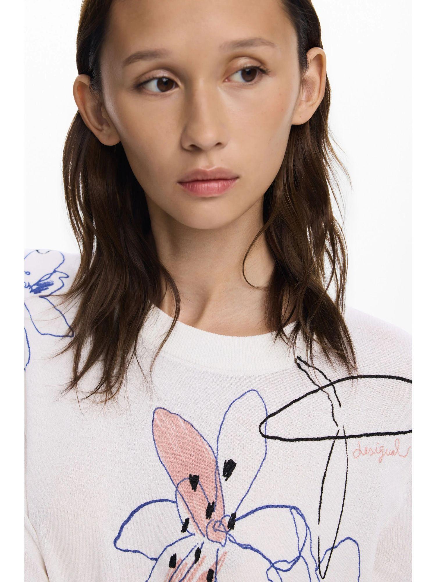 Lightweight, regular-fit sweater with a round neck, long sleeves, and a floral print. Floral print. Relaxed fit. Round neck. Long sleeves. Floral print. Lightweight fabric. AW25 collection. Designed in Barcelona. Model measures: height 180 cm, waist 62 cm, hips 90 cm. Model size: M. Outer fabric: 61% viscose, 39% polyamide.