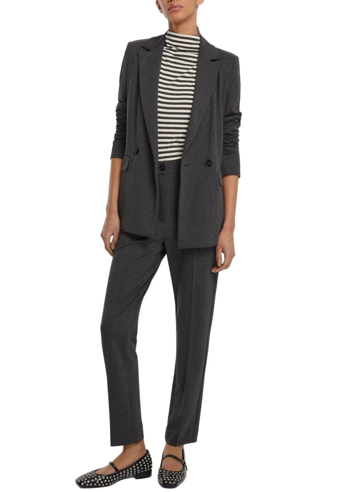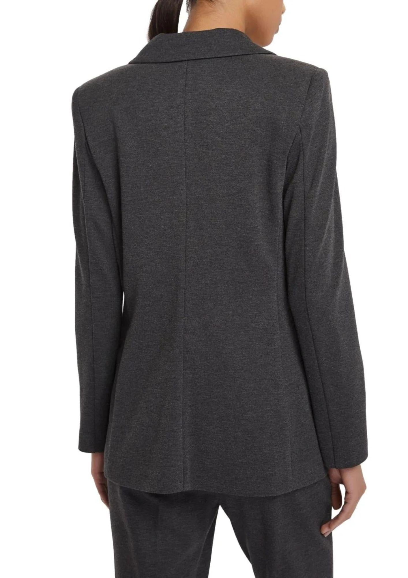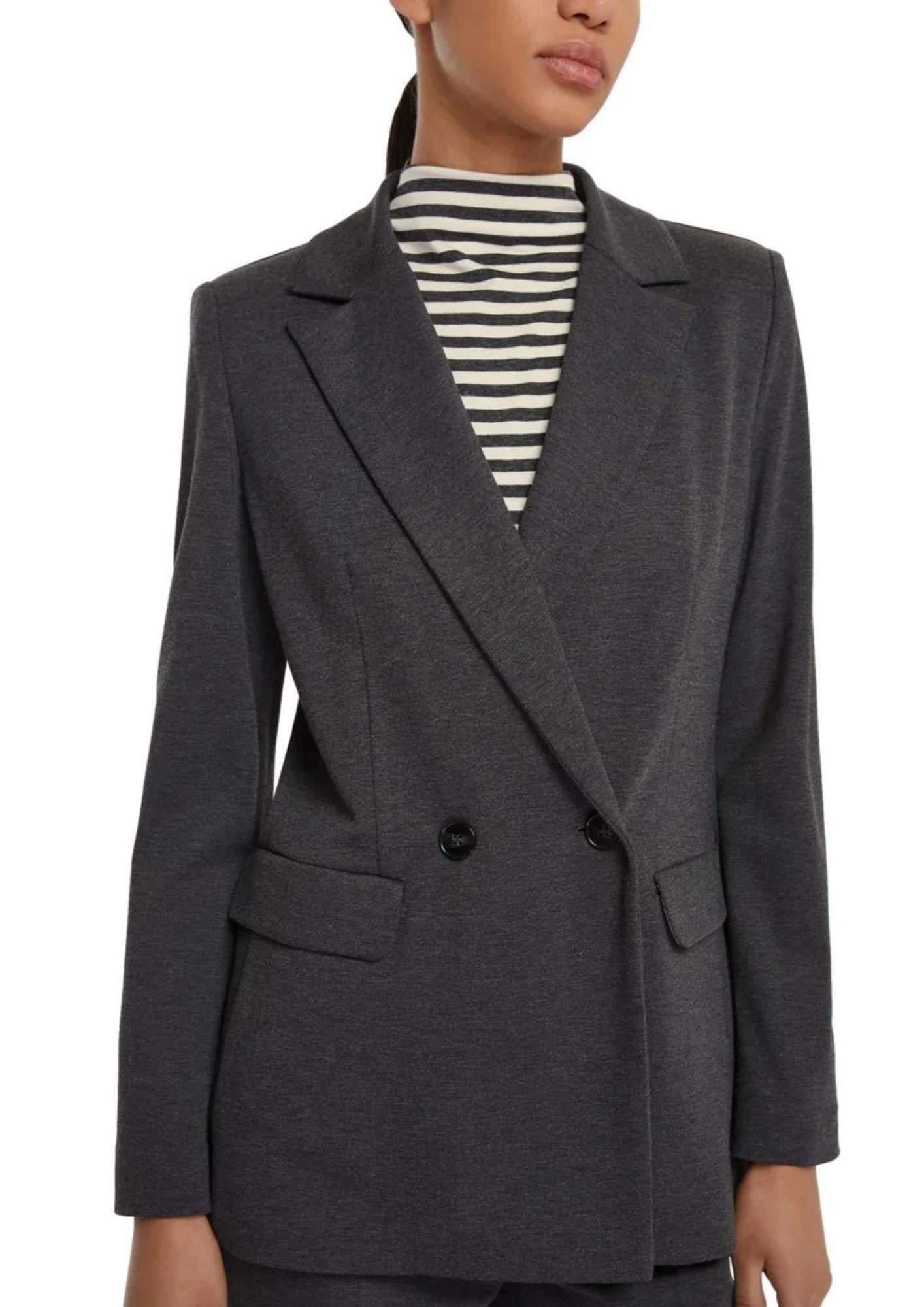Sharp lines on the shoulders and a fit that softly hugs the silhouette: the new jacket combines femininity and a tailored feel. Pair it with a t-shirt for a contemporary touch. Stretch viscose-blend jersey jacket with Milano stitching. Semi-fitted fit, lapel neckline, double-breasted closure, side flaps, semi-lined. Knit fabric: 62% Viscose, 32% Polyamide, 6% Elastane