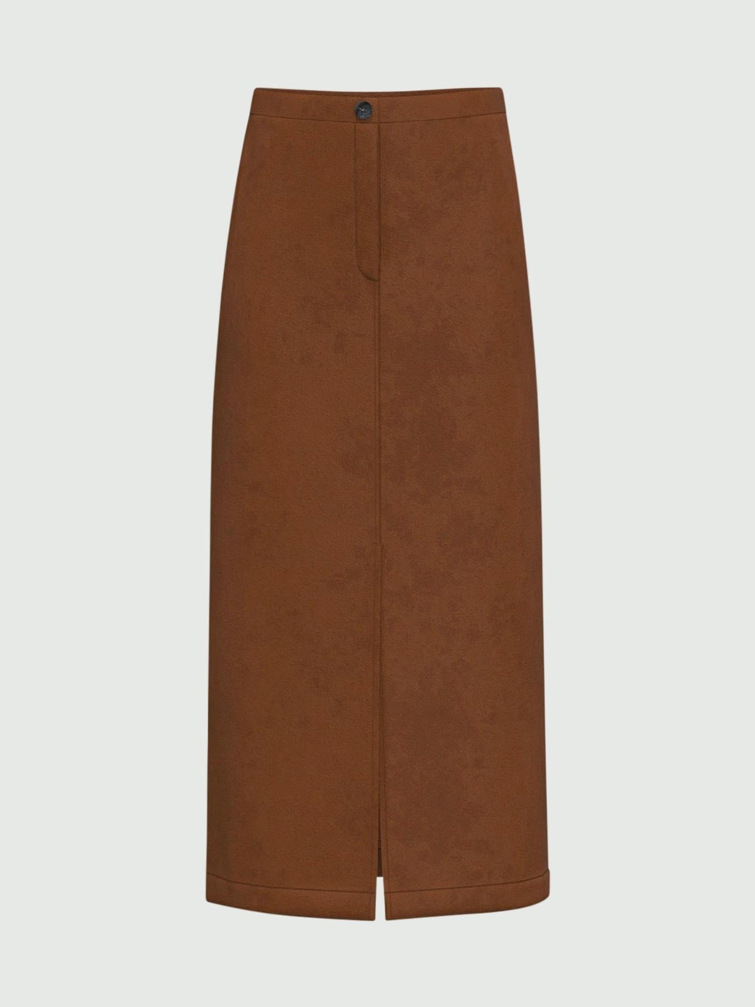 With its soft, smooth finish, this jersey marks a new step in the urban aesthetic. Designed as a pencil skirt, it instantly becomes cool, the perfect piece for everyday wear. Soft, smooth technical jersey skirt. Straight pencil fit. Zip and button closure. Side slash pockets. Back darts. Center front and back vents. Fabric: 88% Polyester, 12% Elastane.